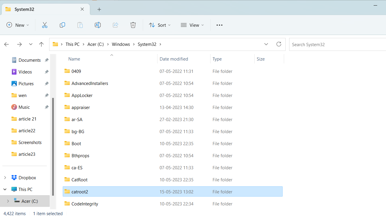 Quindi, cancella il contenuto della cartella Catroot2.