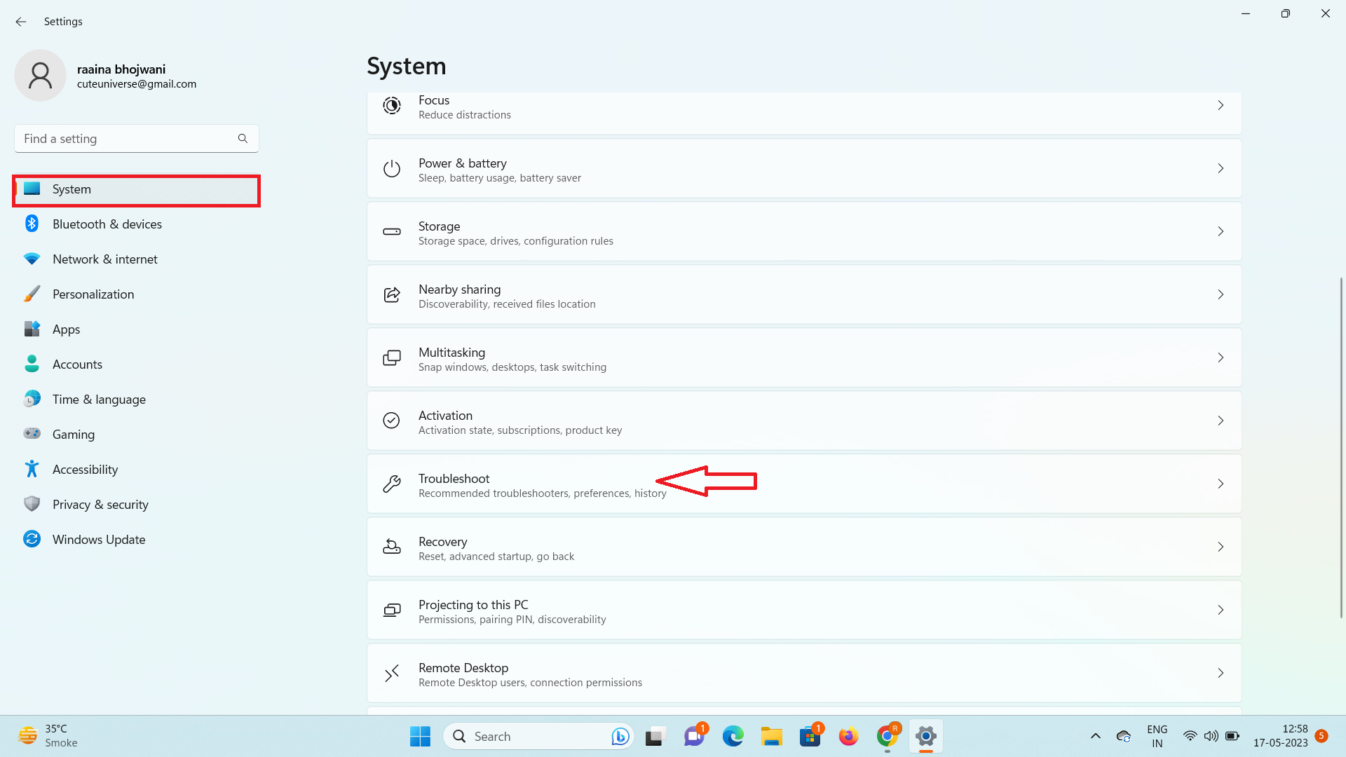 Quindi fare clic suSistema>Risoluzione dei problemi.