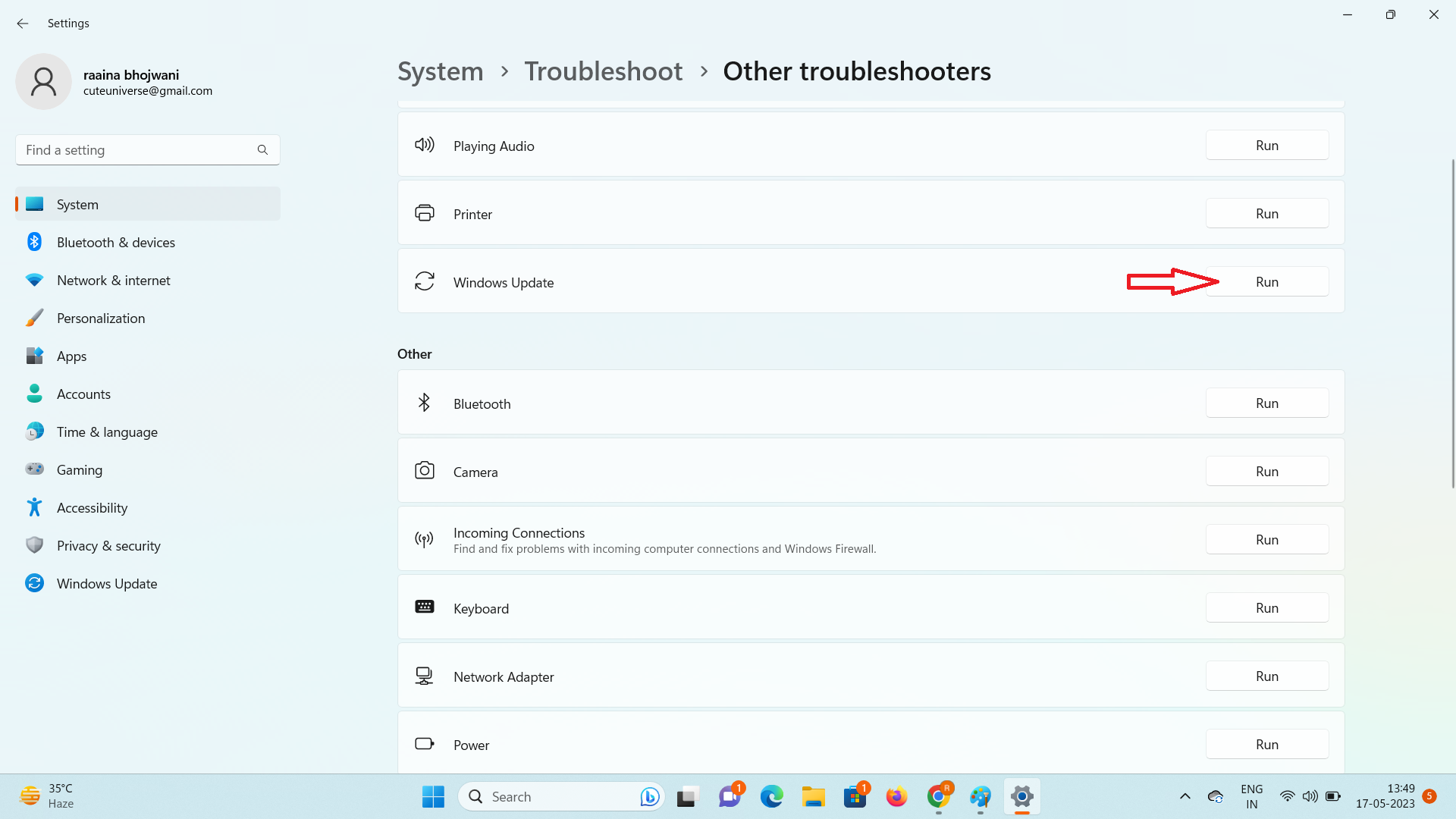 Poi dentroAggiornamento di Windowssezione fare clic suCorrerepulsante.