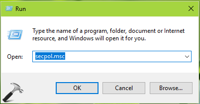 1.PremereWindows+Re metti secpol.mscInCorrerefinestra di dialogo. ClicOKper aprire lo snap-in Criteri di sicurezza.
