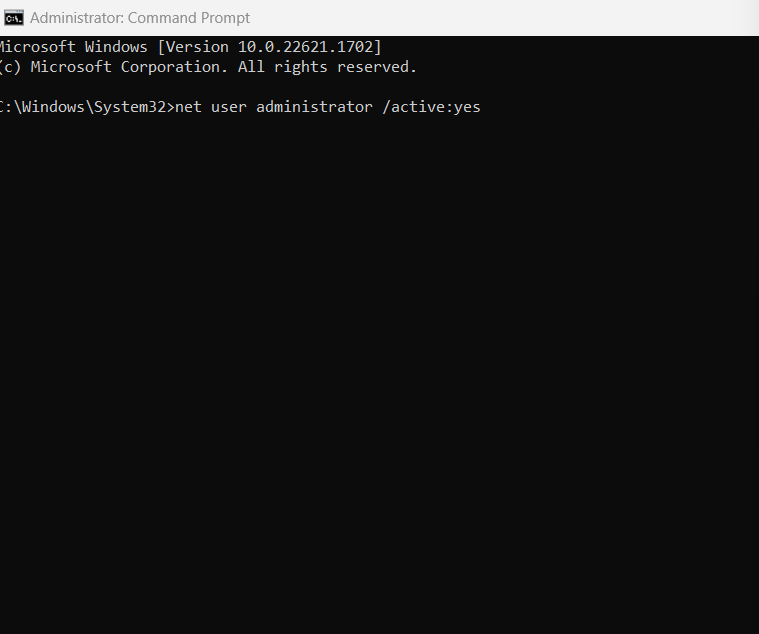 net user administrator /active:yes