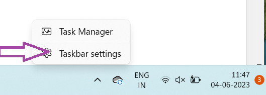 1. Fare clic con il tasto destro sulla barra delle applicazioni e fare clic suImpostazioni della barra delle applicazioni.