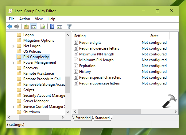 Correzione 1: ripristinare la complessità del PIN/criteri Windows Hello for Business