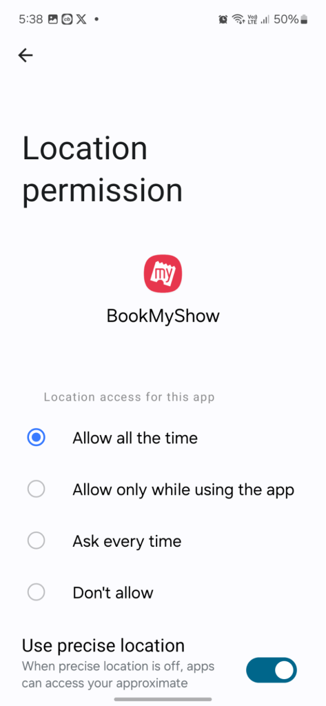 Passaggio 2:ToccaPosizione > Autorizzazioni app.