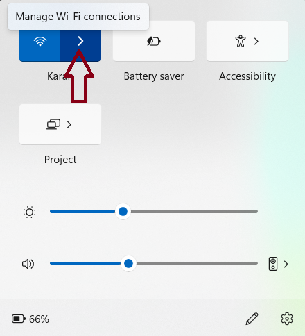 2. Fare clic sulla freccia mostrata accanto all'icona WiFi.