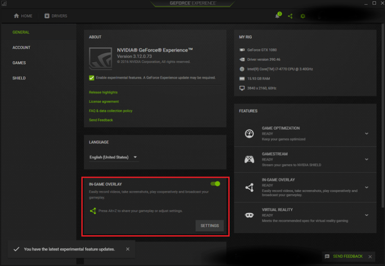 - Avvia ilEsperienza Nvidia GeForceprogramma.