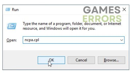 2. Entrancpa.cplnella finestra di dialogo e fare clicOK.