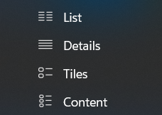 2.Quindi, seleziona traElenco, Dettagli, Riquadri,ODisposizione dei contenuti. Per impostazione predefinita, sarebbe impostato su Piastrelle. Ma puoi provare tutti i set di layout e mantenere quello che ti si addice meglio.