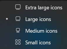Per impostazione predefinita, la dimensione dell'icona sarebbe impostata suPiccolo. Ma puoi modificare la dimensione dell'icona in base ai tuoi gusti. Quindi segui i passaggi indicati di seguito per modificare la dimensione dell'icona: