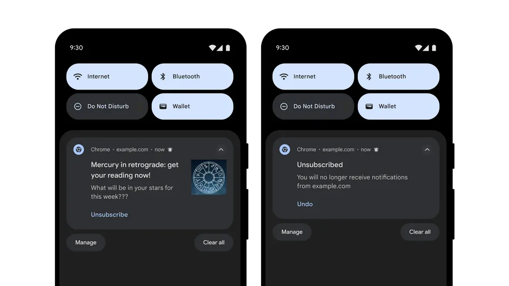 Google utilizza i punteggi di coinvolgimento del sito e la frequenza delle notifiche per determinare se le notifiche mostrate agli utenti sono potenzialmente indesiderate.