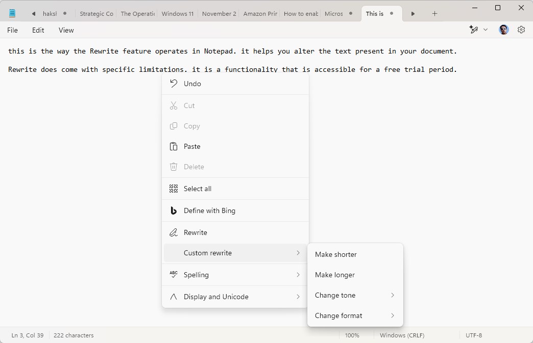 Microsoft ha introdotto una funzionalità AI nel Blocco note che può aiutarti a riscrivere il testo. Saluta Rewrite, approfondiamolo.