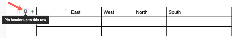 Se crei una tabella con una riga di intestazione, puoi fissarla in alto per mantenerla in posizione. Ciò è utile quando si riorganizzano le righe o si ordina la tabella come discuteremo di seguito.