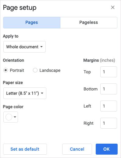 La seconda opzione è disattivata se non hai sezioni designate nel tuo documento, che spiegheremo in seguito.