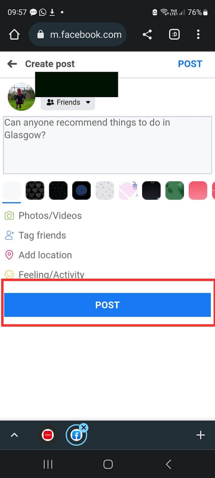 L'ultimo modo per chiedere consigli su Facebook è utilizzare il browser mobile preferito sul tuo smartphone o tablet. Ecco i passaggi da seguire: