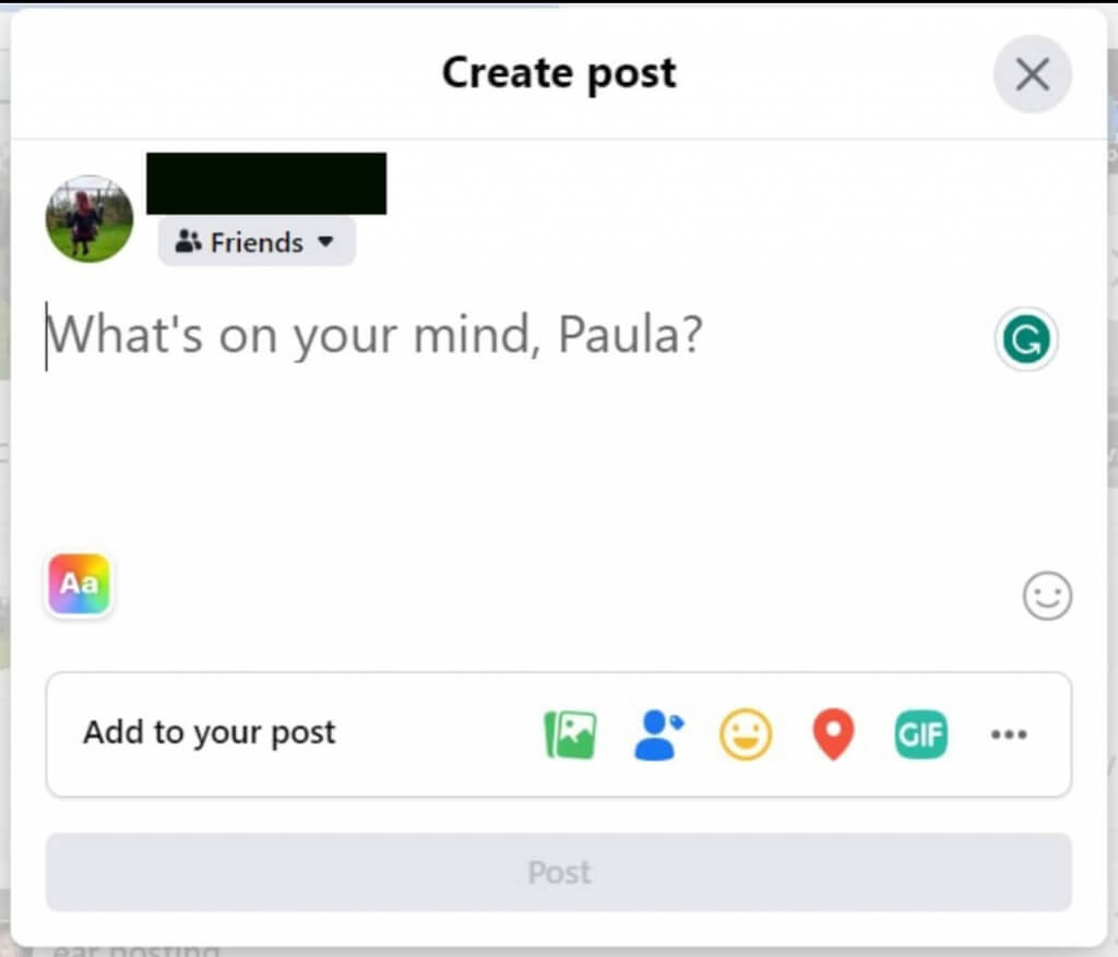 - Si aprirà una finestra popup che ti consentirà di creare un nuovo post.