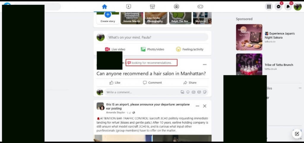 - Dovresti vedere il tuo post sulla tua bacheca di Facebook e Facebook dovrebbe aver taggato automaticamente il tuo post come richiesta di consigli.
