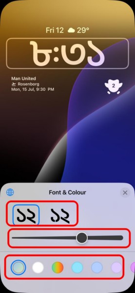 8.Dopo aver impostato la lingua preferita per l'orologio sulla schermata di blocco del tuo iPhone, puoi farlopersonalizzarlo ulteriormentescegliendo il suofont,spessore, Ecoloredal menu Carattere e colore.