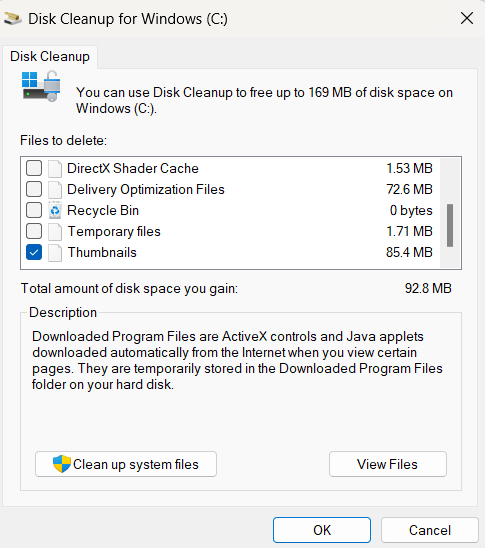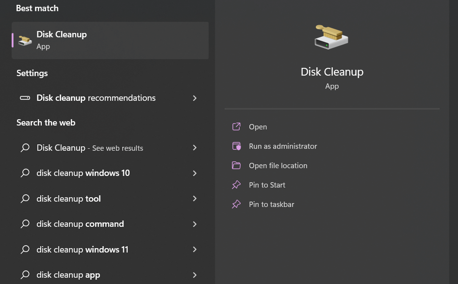 Ecco i passaggi per svuotare la cache delle miniature su Windows 11 con l'aiuto dello strumento Pulizia disco: