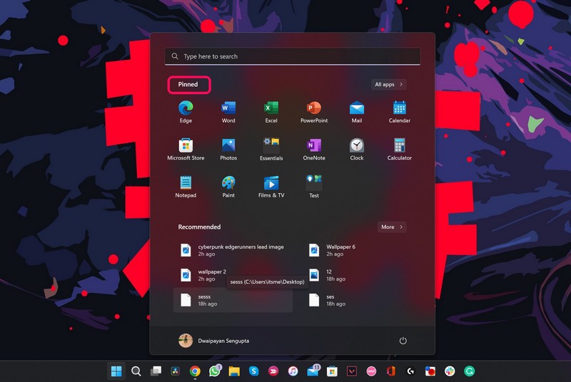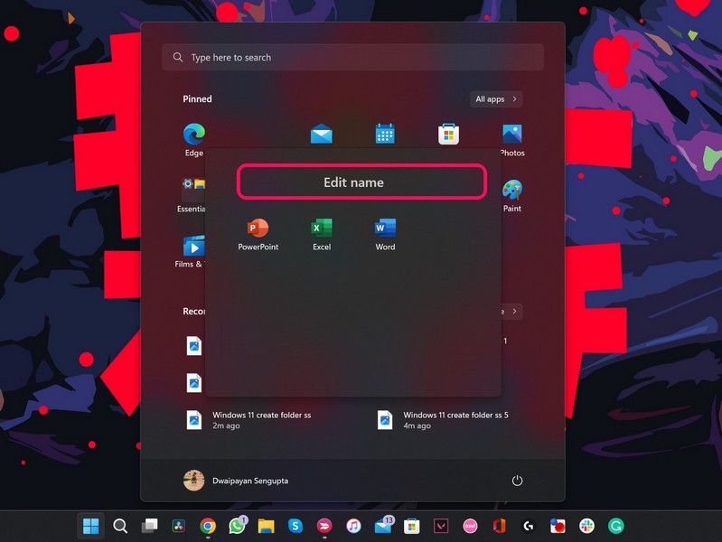 Una volta impostato il nome della cartella, la cartella inizierà ad apparire con lo stesso nel menu Start di Windows 11. Se desideri rinominare nuovamente la stessa cartella in futuro, puoi seguire gli stessi passaggi per farlo.