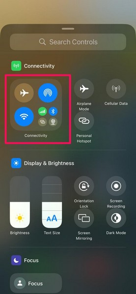 1.Scorri verso il basso dall'angolo in alto a destra dello schermo del tuo iPhone suaprire il Centro di controllo.