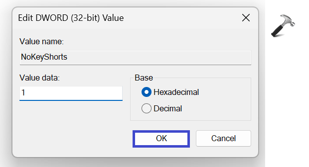 5. Ora fai doppio clic su "NoKeyShorts".