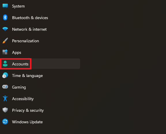 2. Fare clic suConti.