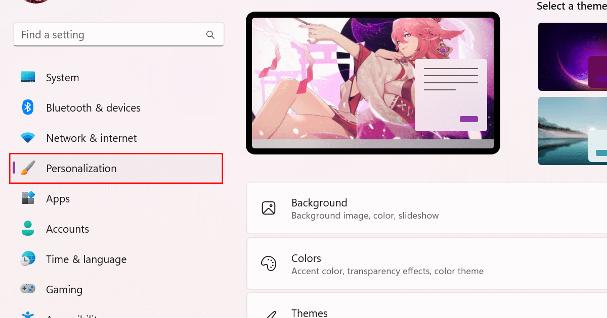 - Fare clic suPersonalizzazionenel menu a sinistra.