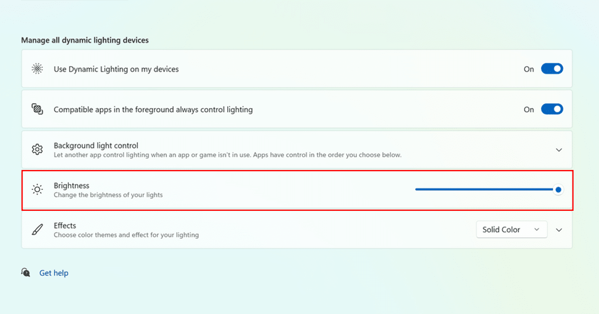 L'illuminazione dinamica è attualmente disponibile solo per un numero limitato di dispositivi, ma Microsoft sta lavorando per aggiungere il supporto per più dispositivi in futuro. Per utilizzare l'illuminazione dinamica, è necessario disporre di un dispositivo che supporti lo standard aperto HID LampArray. Questo standard viene utilizzato da molti dispositivi RGB popolari, tra cui tastiere, mouse e cuffie.