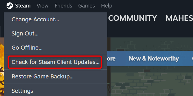 - SelezionareVapore>Controlla gli aggiornamenti del client Steamnella barra dei menu.