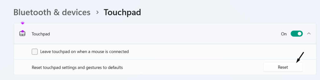 8. Ripristina le impostazioni predefinite del touchpad