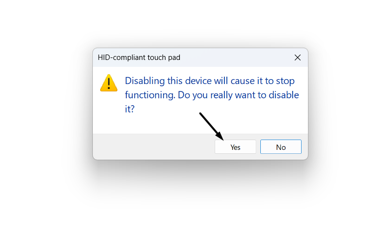 4.Nel nuovo prompt, fare clic suSÌpulsante per disattivare l'adattatore del touchpad sul PC o sul laptop.