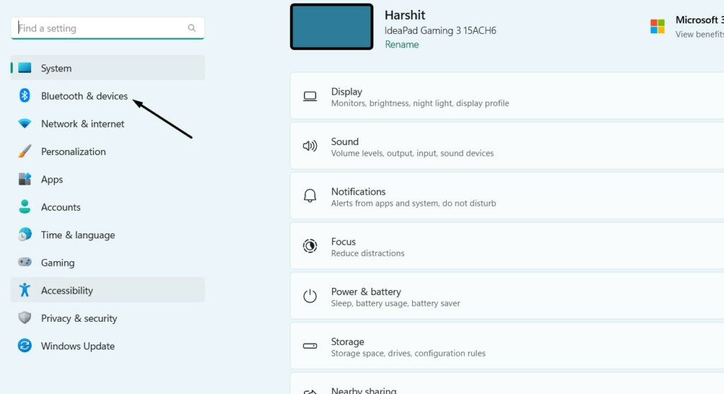 1.Avvia ilApplicazione Impostazionisul tuo PC Windows 11 e vai al fileBluetooth e dispositivizona.