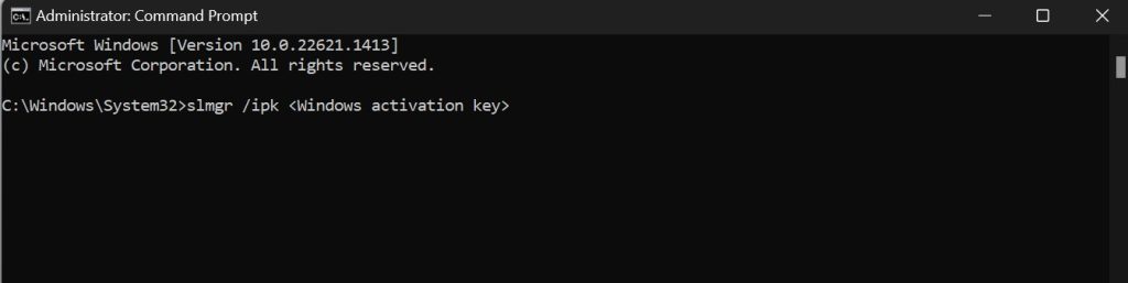 5.Dopo i passaggi sopra menzionati, puoi scegliere di installare nuovamente Windows 11 sul tuo PC o laptop. Quindi puoi inserire la chiave di salvataggio di Windows durante l'installazione di Windows o digitare il comandoslmgr /ipk <chiave di attivazione Windows>nel prompt dei comandi di Windows.