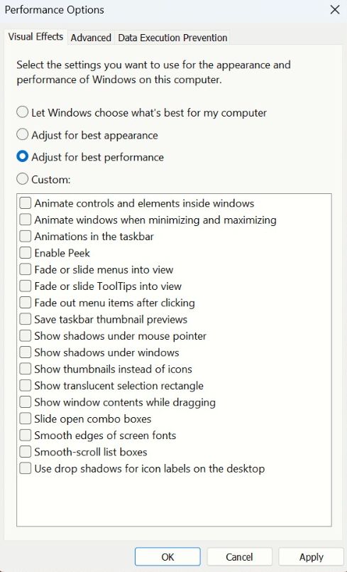 Passaggio 3:SuOpzioni di prestazionedialogo, scegli diRegola per ottenere le migliori prestazionidopo di che.