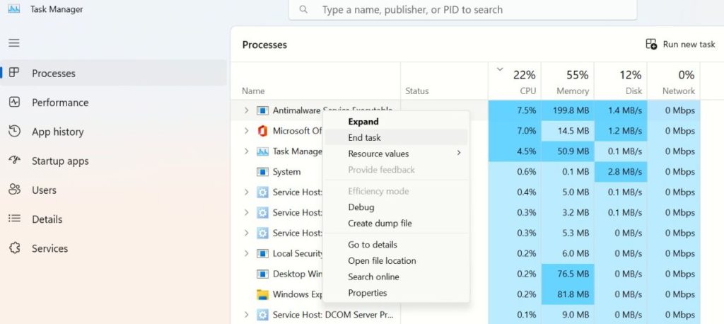 Passaggio 5:Fare clic con il pulsante destro del mouse su quel processo e fare clic suTermina attività.