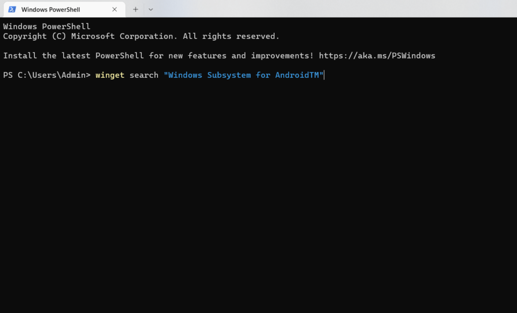 ricerca Winget "Sottosistema Windows per AndroidTM"