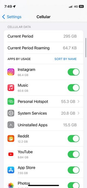 4. Se l'interruttore non è abilitato per detta app, puoi semplicementetoccalo per abilitarloAutorizzazione dati cellulare per il tuo iPhone.