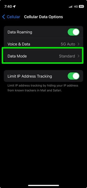 Puoi seguire i passaggi seguenti per abilitare l'opzione Consenti più dati su 5G per i dati cellulari sul tuo iPhone: