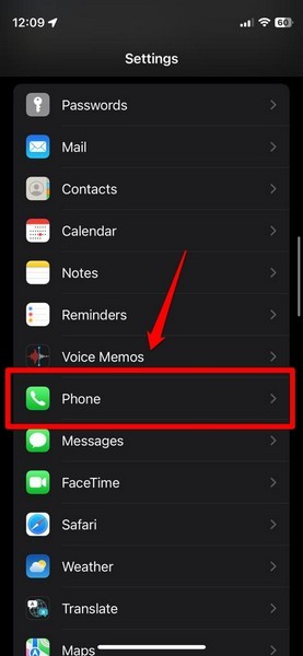 2.Individuare ilTelefonoopzione nell'elenco e toccala per aprirla.