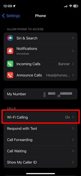 3.Sotto ilChiamatesezione nella pagina successiva, toccare ilChiamate Wi-Fiopzione.