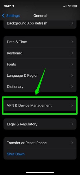 3.Scorri verso il basso per individuare ilVPN e gestione dei dispositiviopzione e toccala per aprirla.