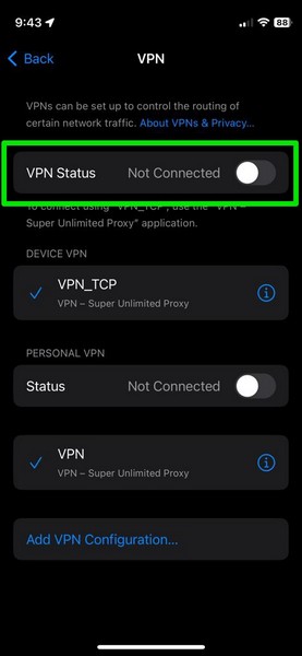 7. Disabilita la VPN sul tuo iPhone