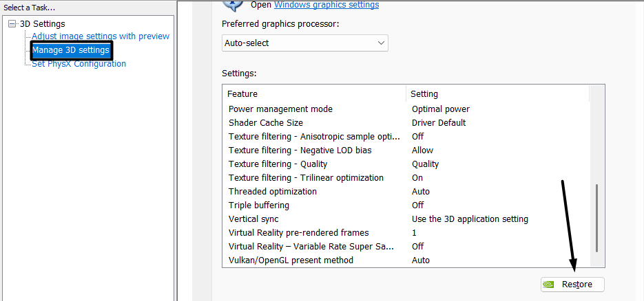 13. Ripristina le impostazioni globali del pannello di controllo NVIDIA