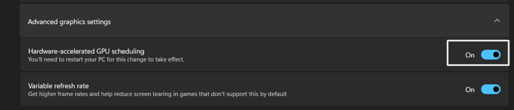 8. Disattiva la pianificazione GPU con accelerazione hardware (HAGS)