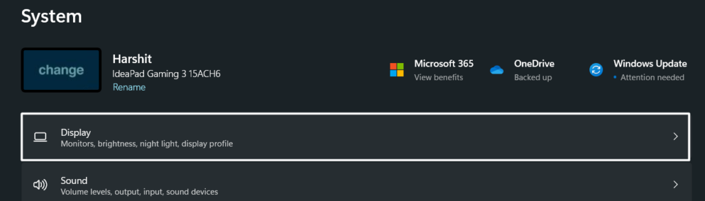 1.Apri ilApplicazione Impostazionisul tuo PC Windows 11 e vai al fileDisplaysezione dalSistemacategoria.