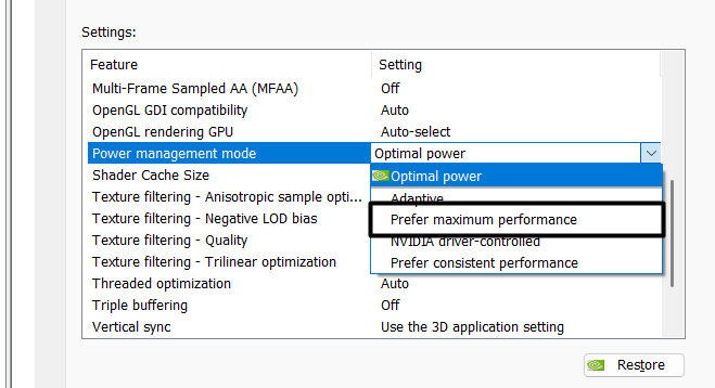 3.CercareModalità di gestione dell'energianelImpostazioni:casella e selezionare ilPreferisci la massima prestazioneopzione dal menu a discesa.