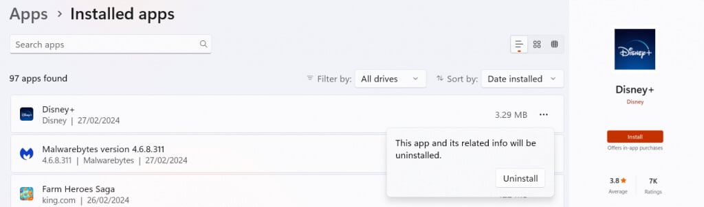 Reinstallare l'app Disney Plus