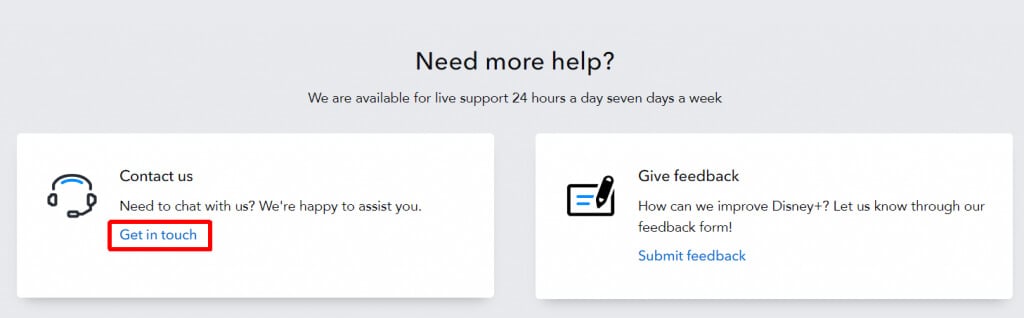 Quando nessuna delle soluzioni di cui sopra risolve il problema e continui a visualizzare il codice di errore 41, è ora di contattare il supporto Disney Plus per assistenza. Puoi contattare il supporto 24 ore su 24, 7 giorni su 7 tramite ilCentro assistenza. Basta scorrere verso il basso e selezionare Contattaci in Hai bisogno di ulteriore aiuto?