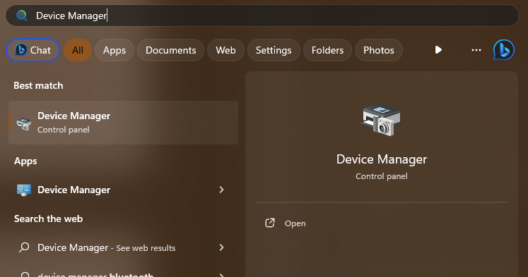 1.Premere ilVincitatasto per aprire il menu Start. TipoGestore dispositivisulla barra di ricerca e premi il tastoEntrachiave.