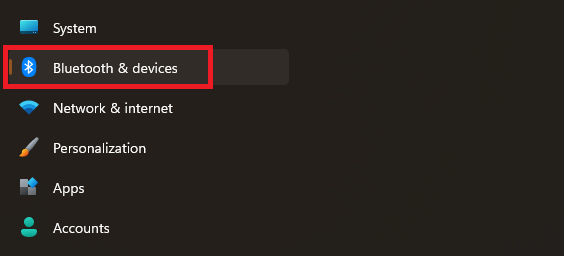 2.Fare clic suBluetooth e dispositiviopzione dalla scheda di destra.